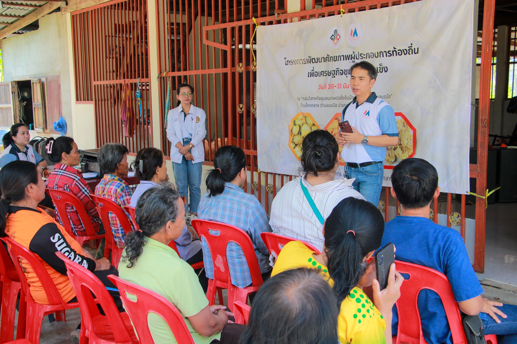 คณะวิทยาการจัดการ มหาวิทยาลัยราชภัฏมหาสารคาม ลงพื้นที่จัดกิจกรรมภายใต้ "โครงการพัฒนาศักยภาพผู้ประกอบการท้องถิ่นเพื่อเศรษฐกิจชุมชนเข้มแข็ง" ณ กลุ่มวิสาหกิจชุมชนเกษตรยั่งยืนบ้านโคกกลางบรบือ ตำบลโคกกลาง อำเภอบรบือ จังหวัดมหาสารคาม ระหว่างวันที่ 30-31 มีนาคม 2569 โดยบรรยากาศเต็มไปด้วยความอบอุ่นและการบูรณาการความรู้ร่วมกันระหว่างคณาจารย์ นักศึกษา และพี่น้องในชุมชน