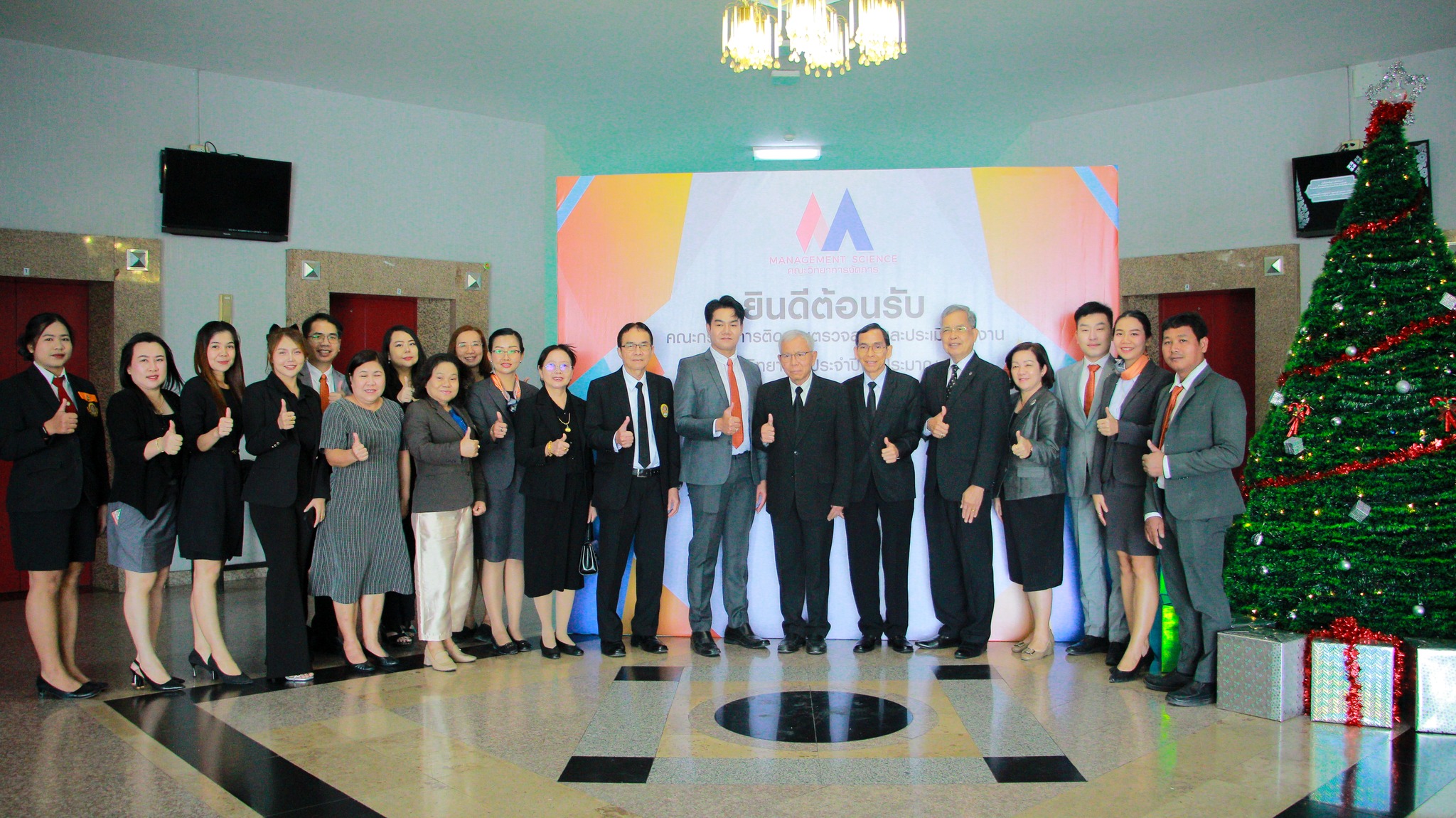 เมื่อวันจันทร์ที่ 22 ธันวาคม พ.ศ. 2568 ณ ห้องประชุมชั้น 1 คณะวิทยาการจัดการ ผู้ช่วยศาสตราจารย์ ดร.ชัยธวัช ศิริบวรพิทักษ์ คณบดีคณะวิทยาการจัดการ พร้อมด้วยคณะผู้บริหาร คณาจารย์ และบุคลากร ให้การต้อนรับคณะกรรมการติดตามตรวจสอบและประเมินผลงาน ในโอกาสเข้าตรวจเยี่ยมและประเมินผลการดำเนินงานของคณะฯ ประจำปีงบประมาณ 2568