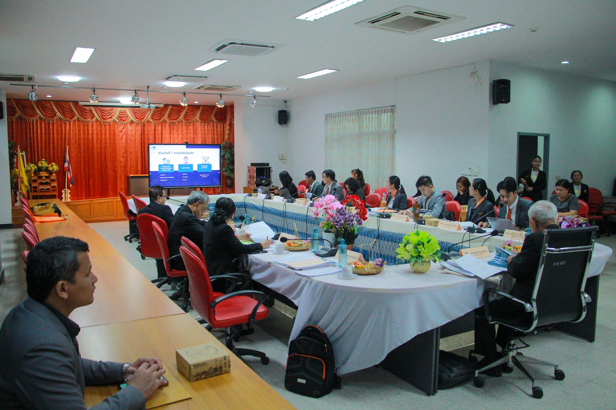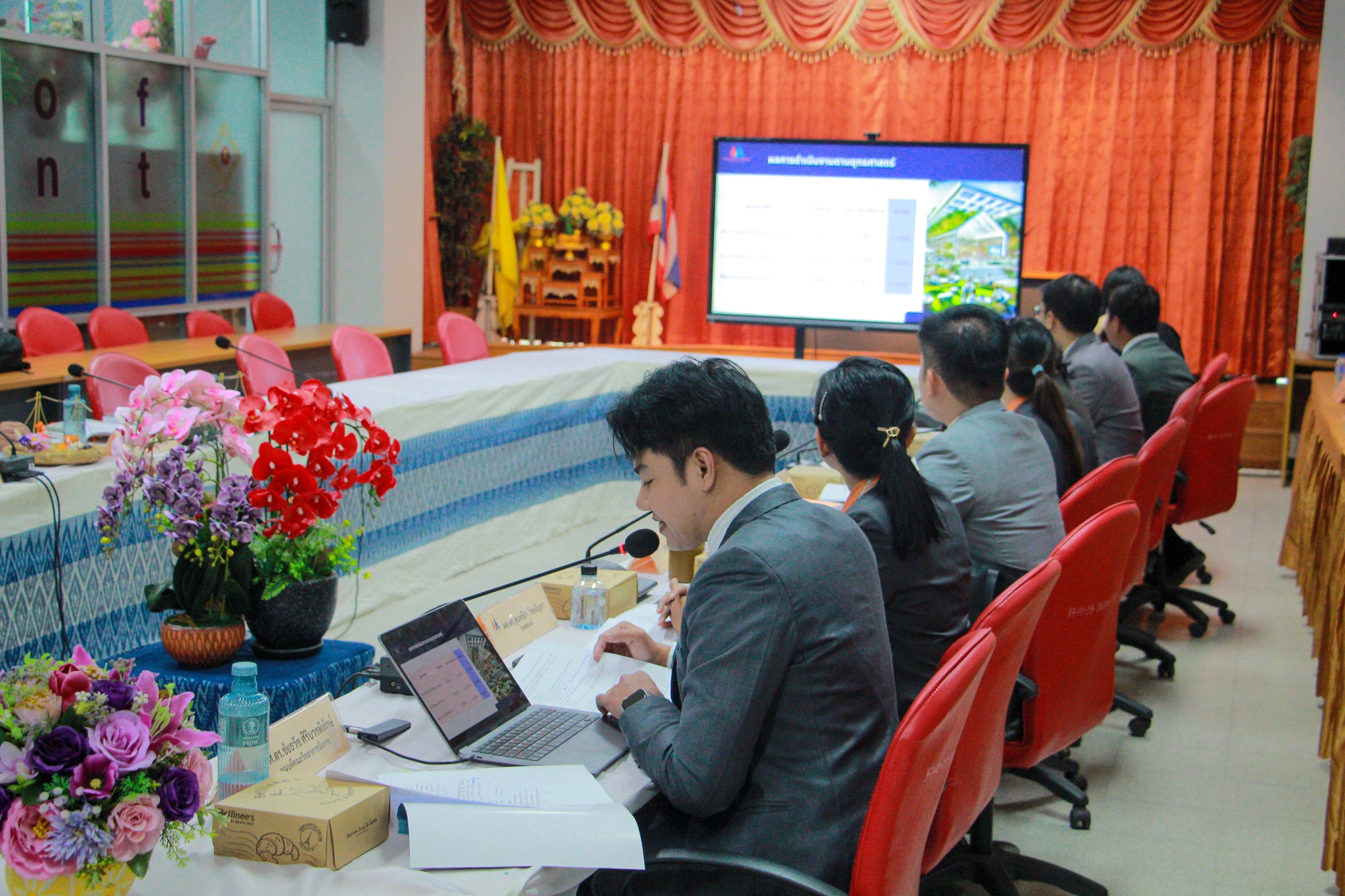 ในการนี้ ผู้ช่วยศาสตราจารย์ ดร.ชัยธวัช ศิริบวรพิทักษ์ ได้นำเสนอภาพรวมผลการดำเนินงาน การบริหารจัดการงบประมาณ และโครงการต่างๆ ที่ได้ดำเนินการขับเคลื่อนตลอดปีงบประมาณที่ผ่านมา เพื่อแสดงให้เห็นถึงความโปร่งใสและประสิทธิภาพในการบริหารงานตามหลักธรรมาภิบาล