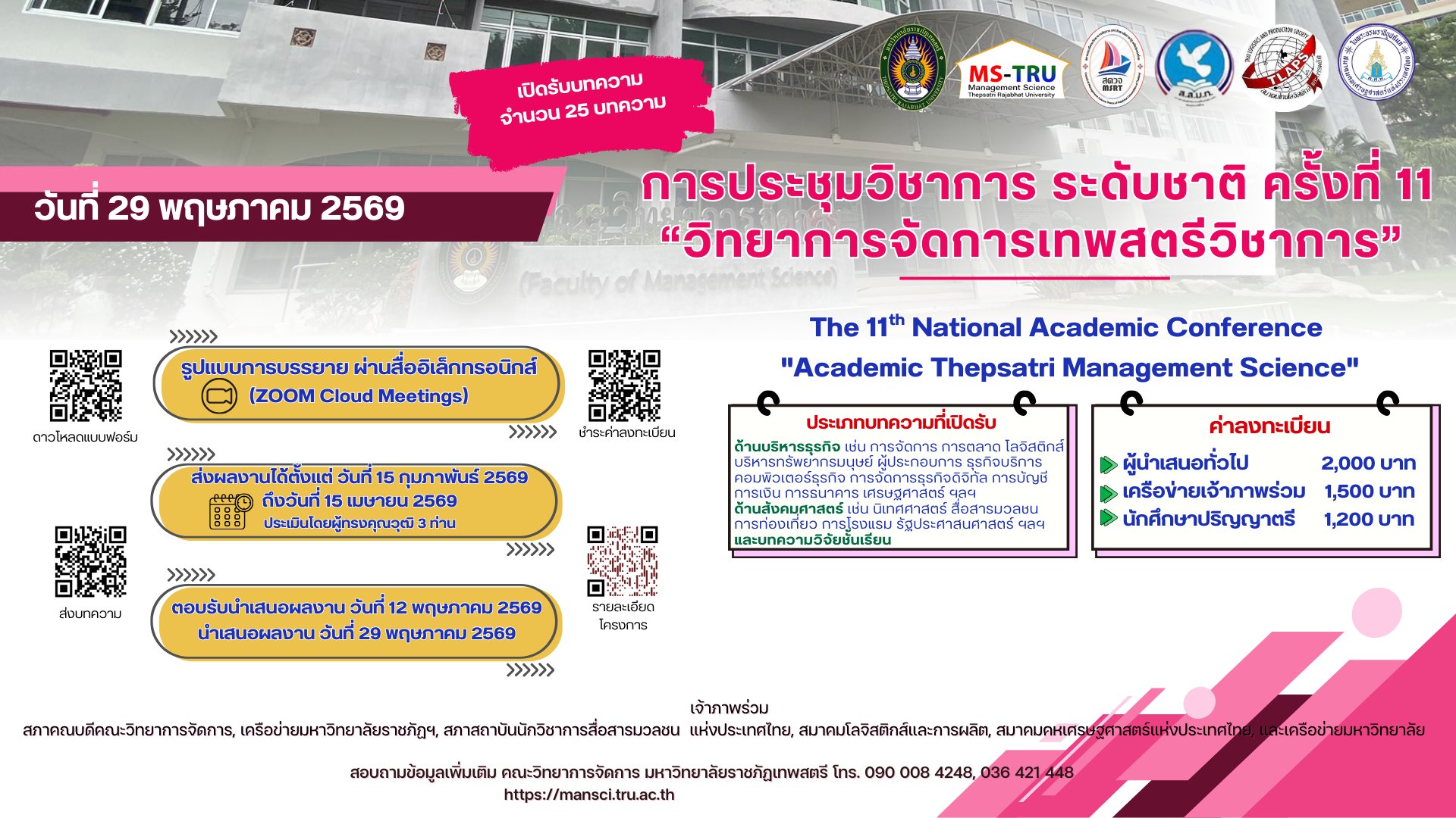 คณะวิทยาการจัดการ มหาวิทยาลัยราชภัฏเทพสตรี ประชาสัมพันธ์การประชุมวิชาการระดับชาติ ครั้งที่ 11